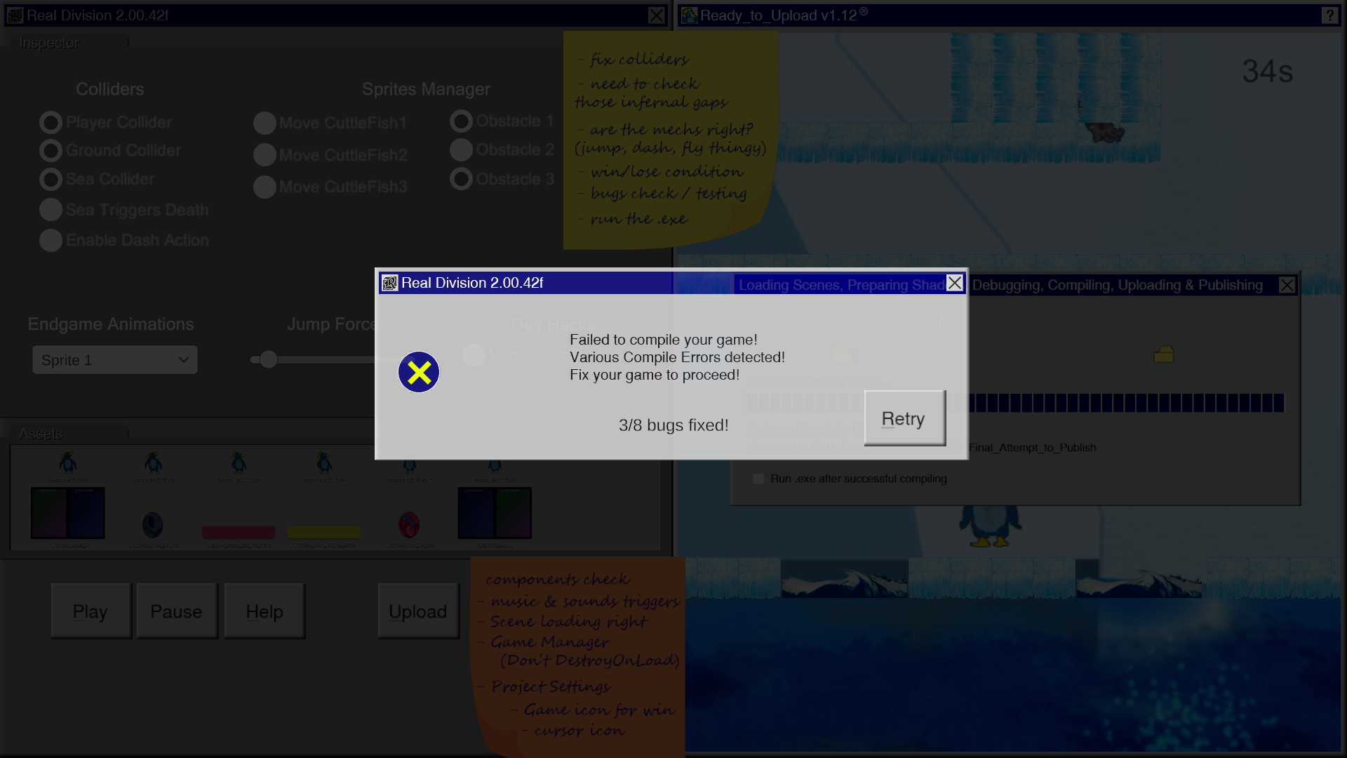 Every game that is developed needs testing and debugging before building and enjoying it. "Ready for Upload" is actually not ready not be uploaded. Being a member of a game developer team you should check and find all the problems and then upload the final version of the game. You have only one minute before the game wipes and all settings are reset.